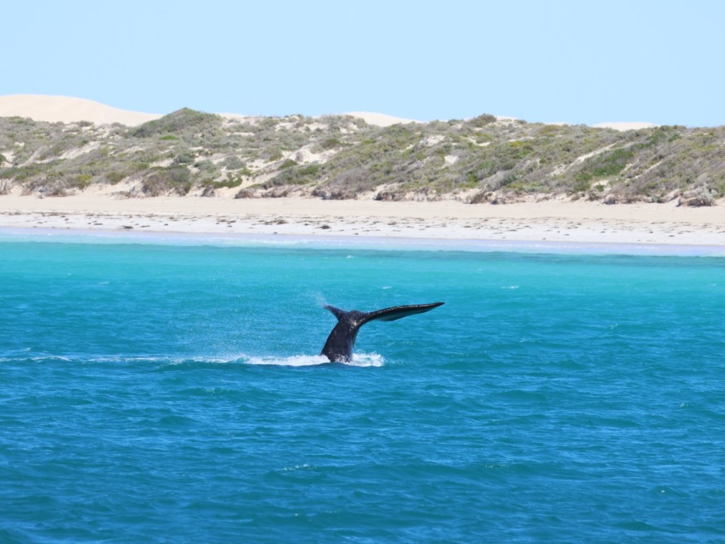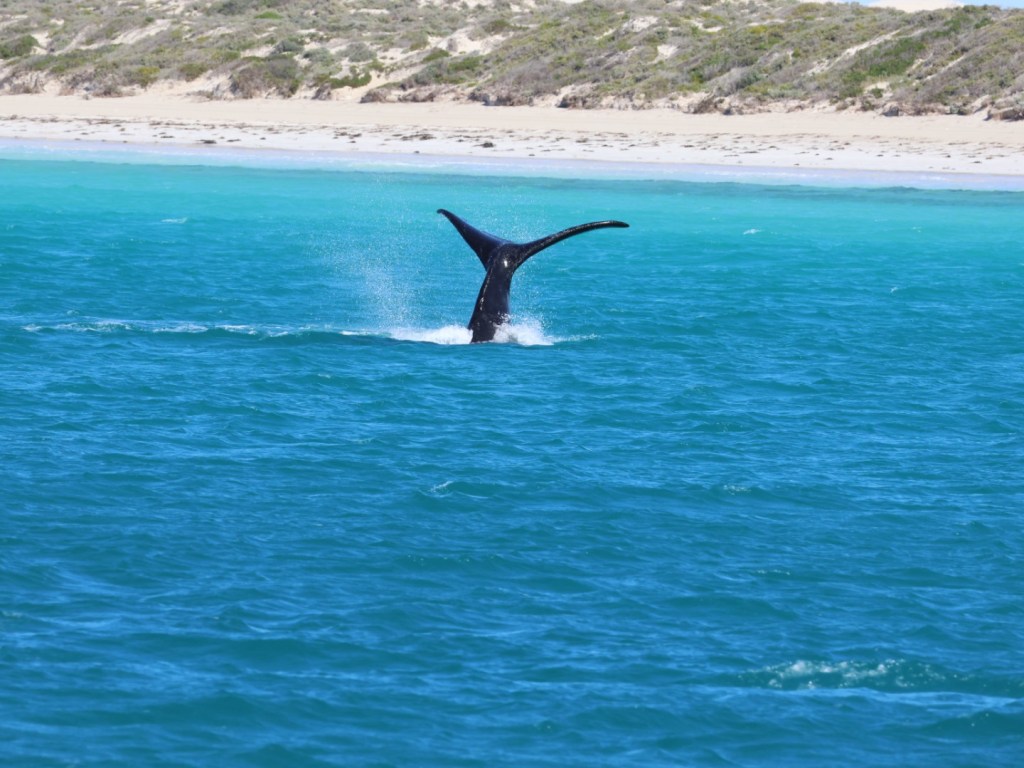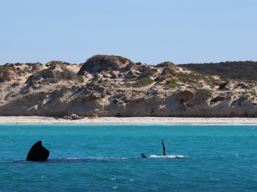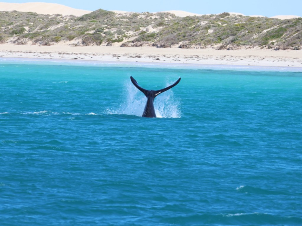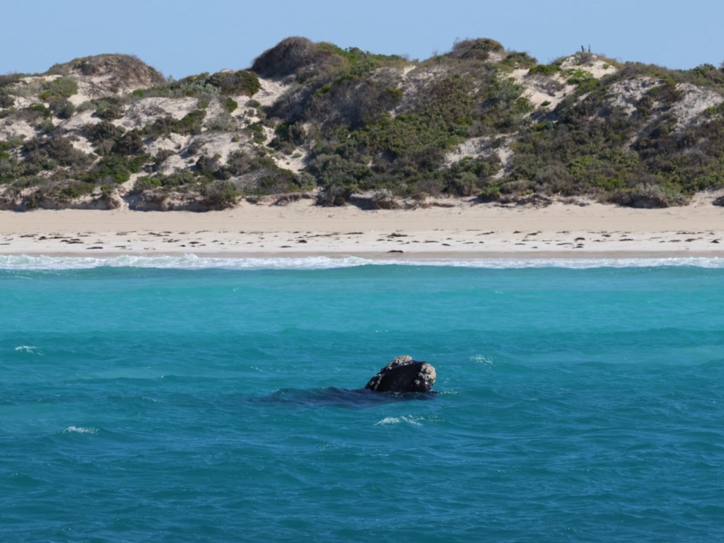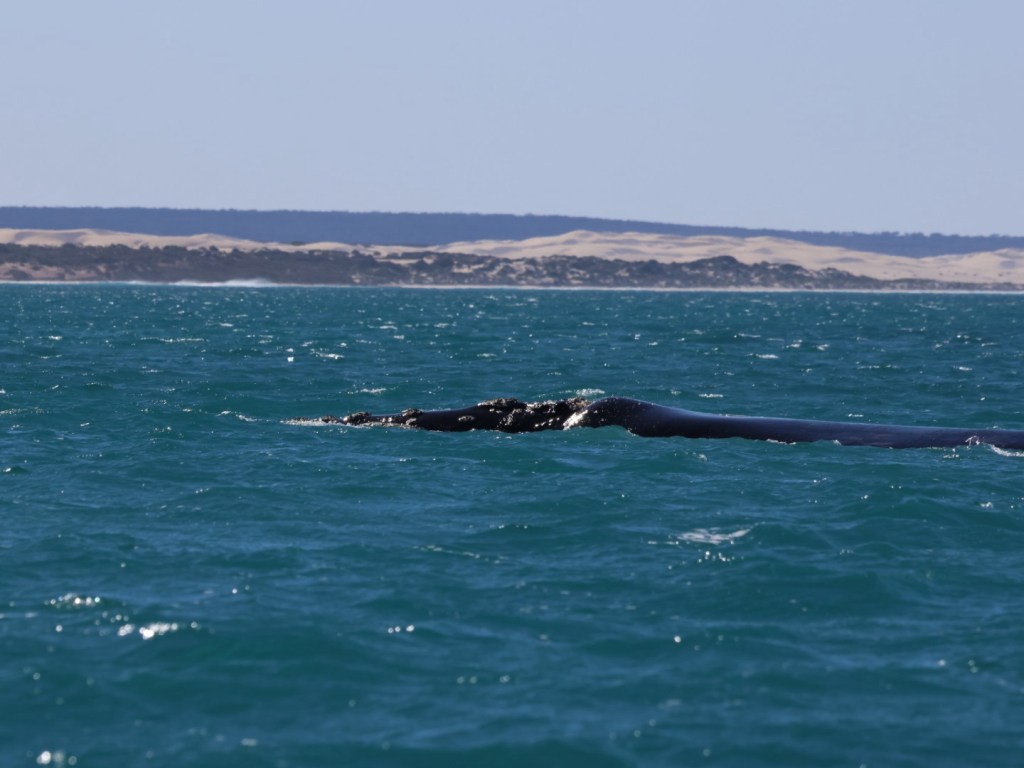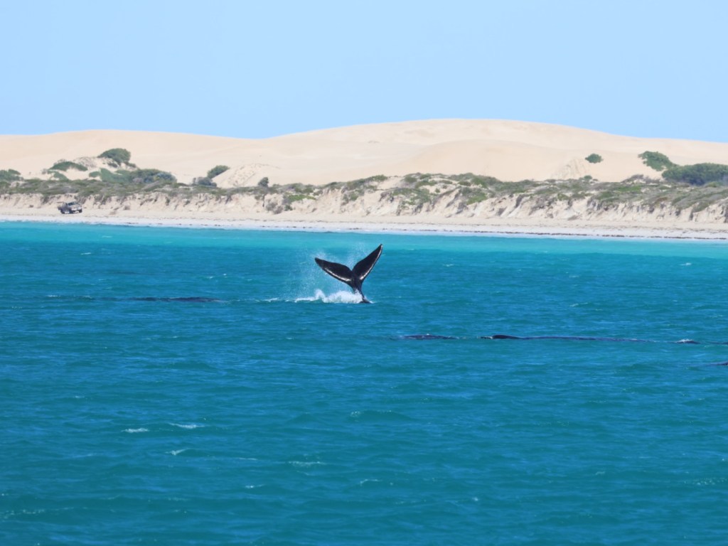 The cruise was unbelievable. We saw at least 13 pairs (mother and calf) and two loners. So many facts and such excitement to see so many whales so close and with the awesome backdrop of unnaturally blue waters, sand dunes and surf.