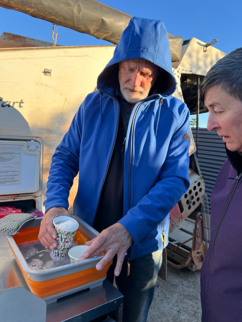 Mary and I put some washing on, we got some nibbles out and Phil and Stef had Phil’s van wheel off to sort those brakes. They found the magnetic solenoid was not attached to anything. Also the wires to it were severed. So the problem can’t be fixed here on the track.