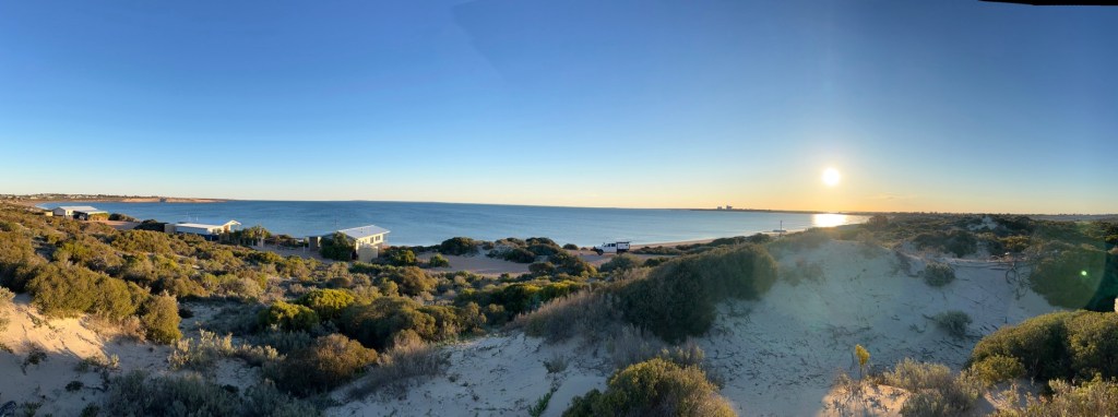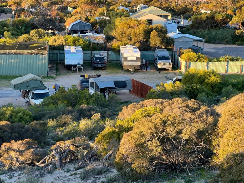 We hit the quarantine station just outside Ceduna and Richard was waiting just up the road, with his motor running, so I led into Ceduna and out to Shelly Beach CP on recommendation from Mark at Fowlers Bay. Richard remained running and got the van to their site – he also asked the managers if they had a battery charger, they did and were happy to loan it. She also told Richard that Ceduna is the breakdown capital of Australia.