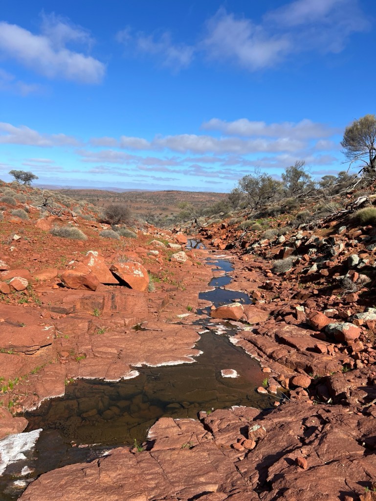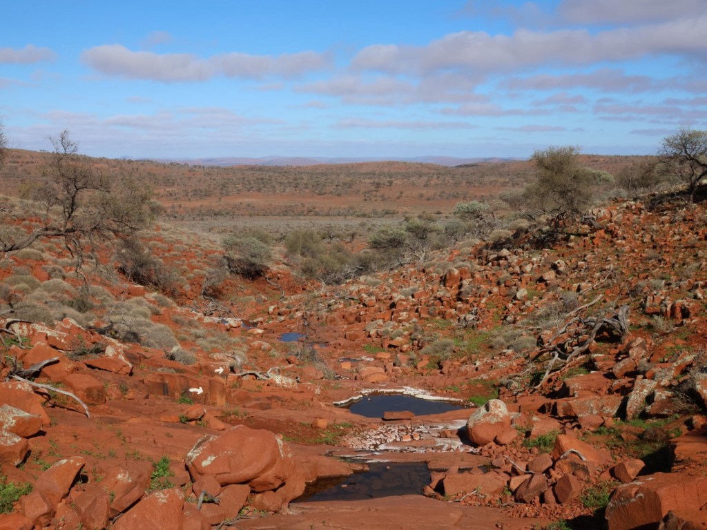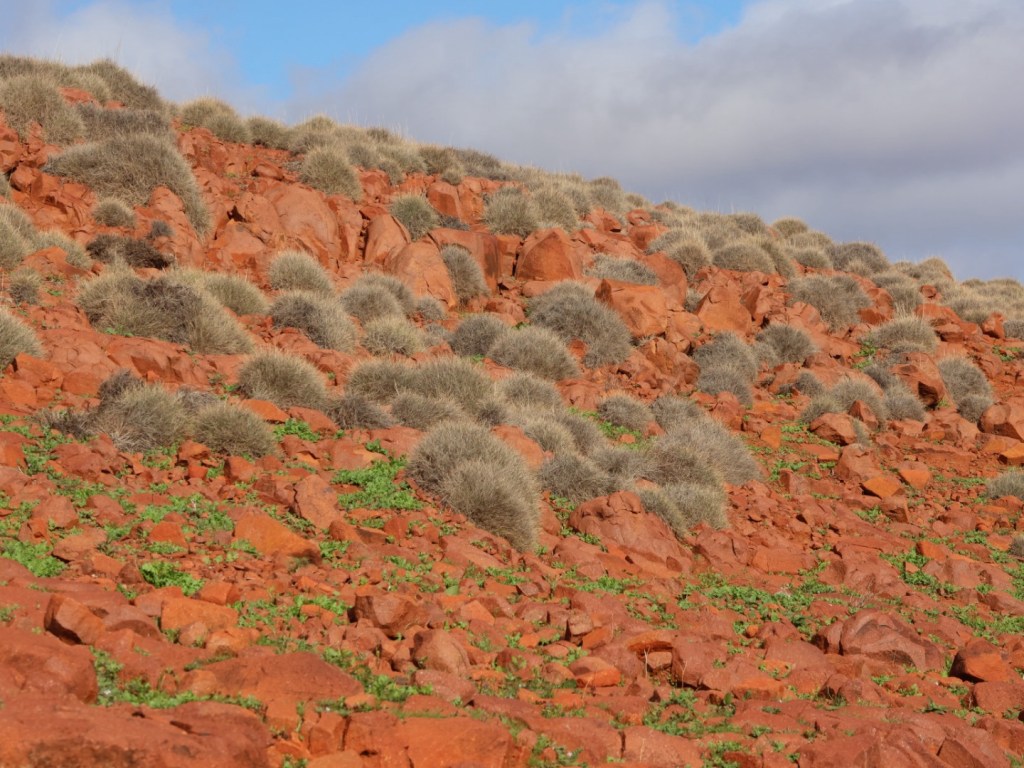 The landscape is a mix of sandy and rocky. The Gawler Ranges are red and rocky and covered in green from recent rains I presume.
