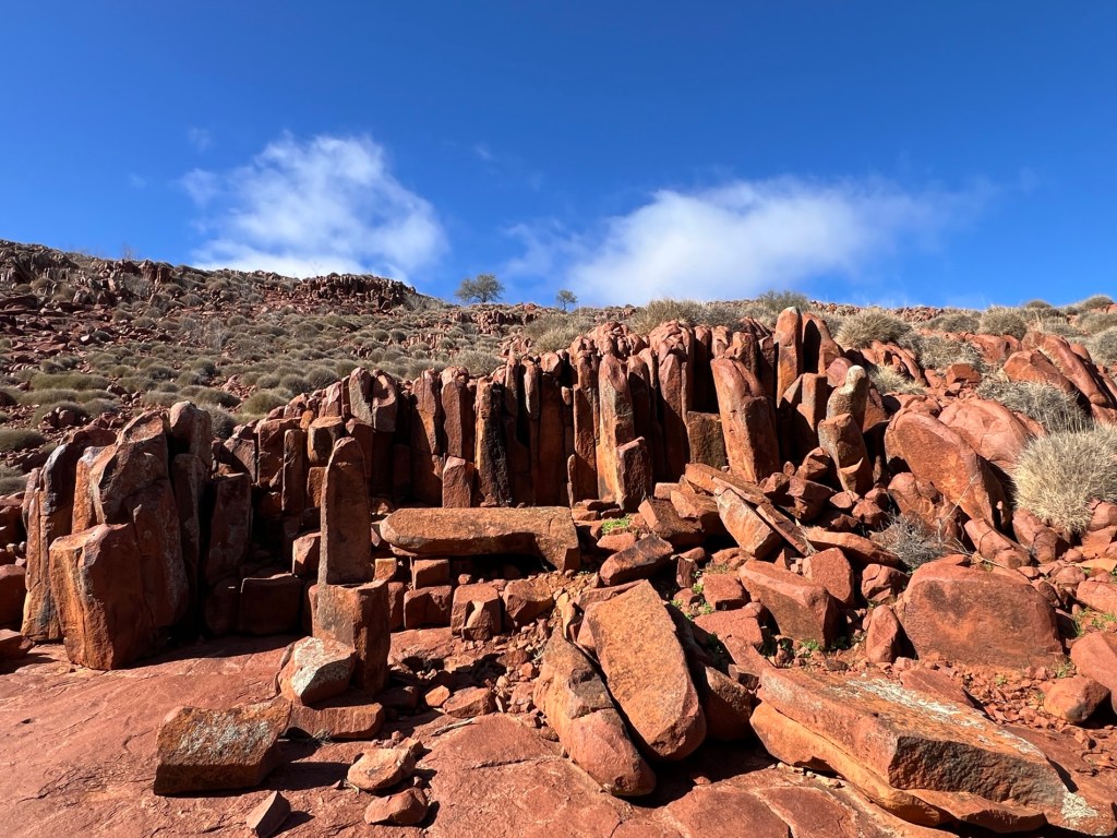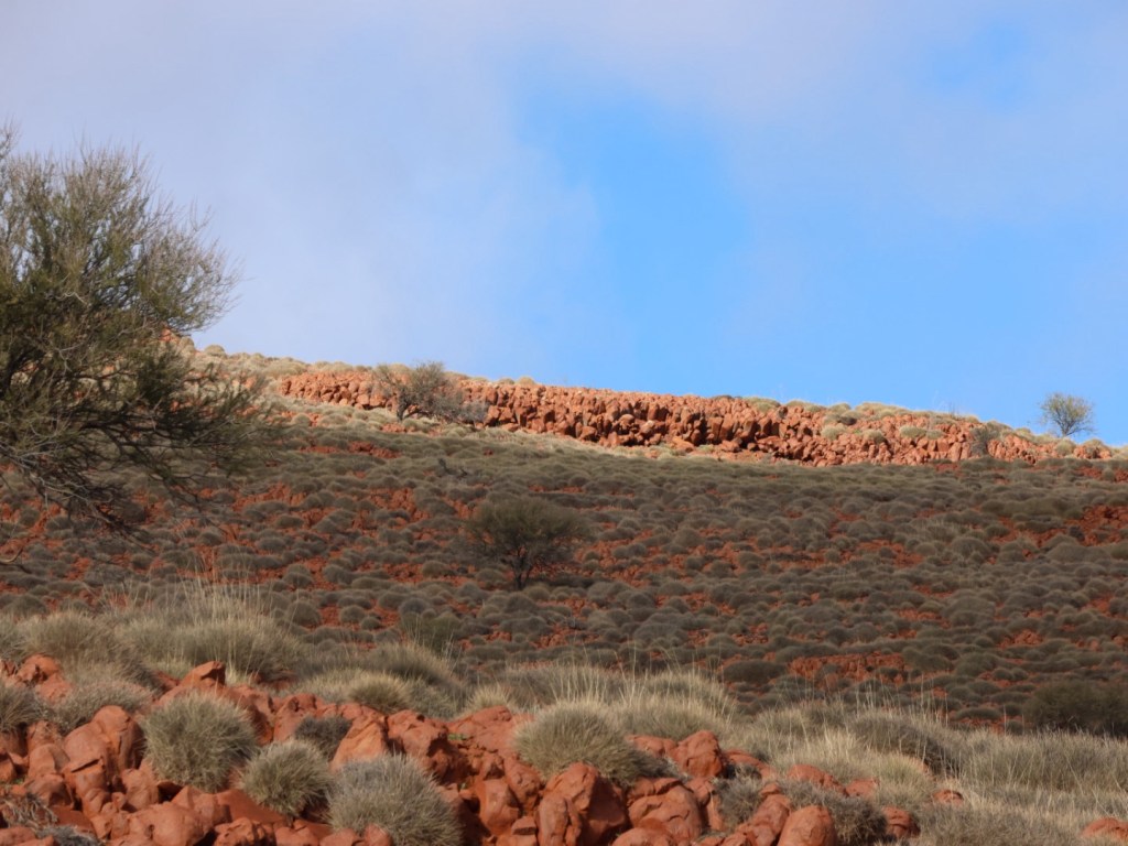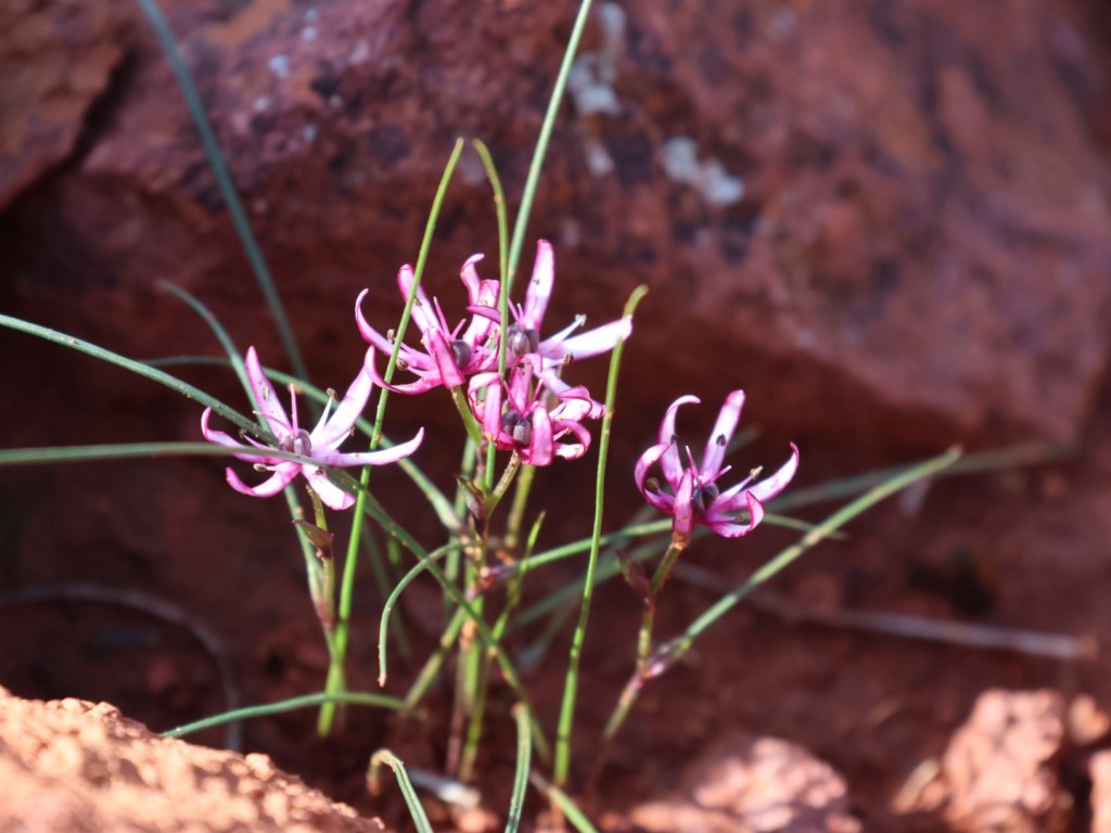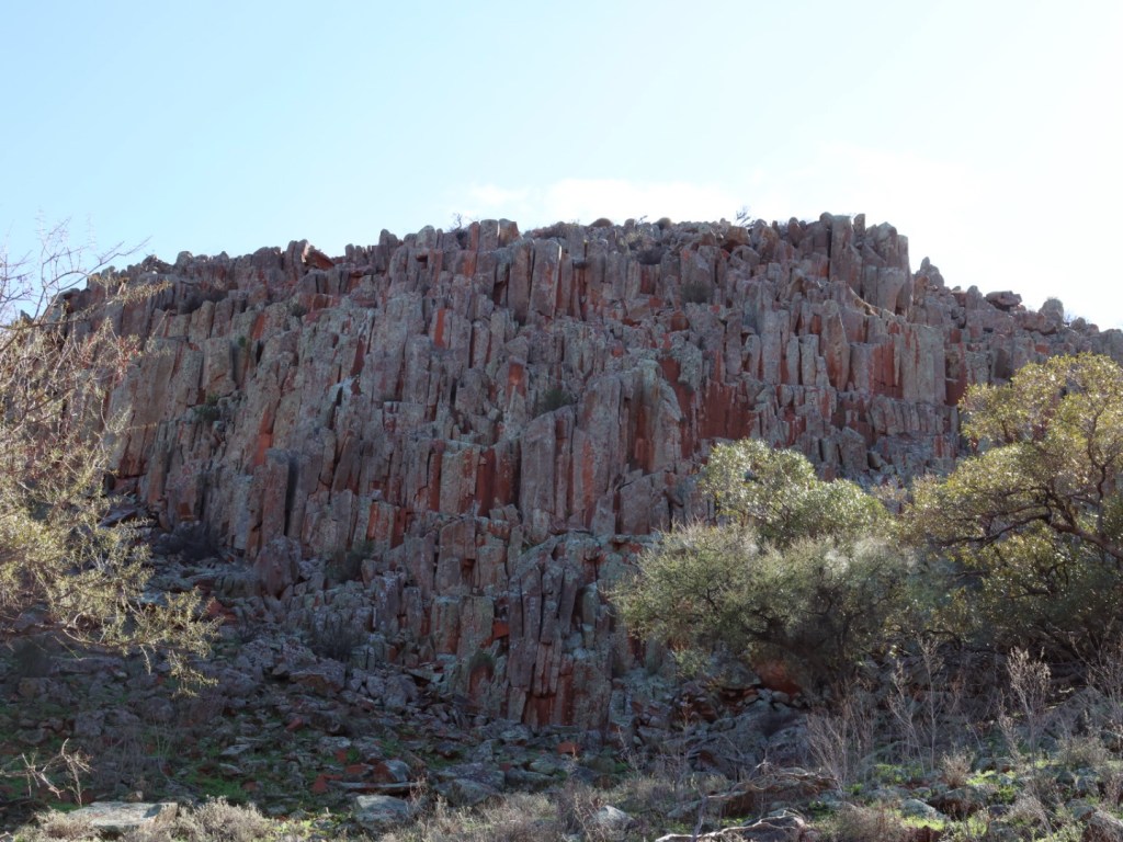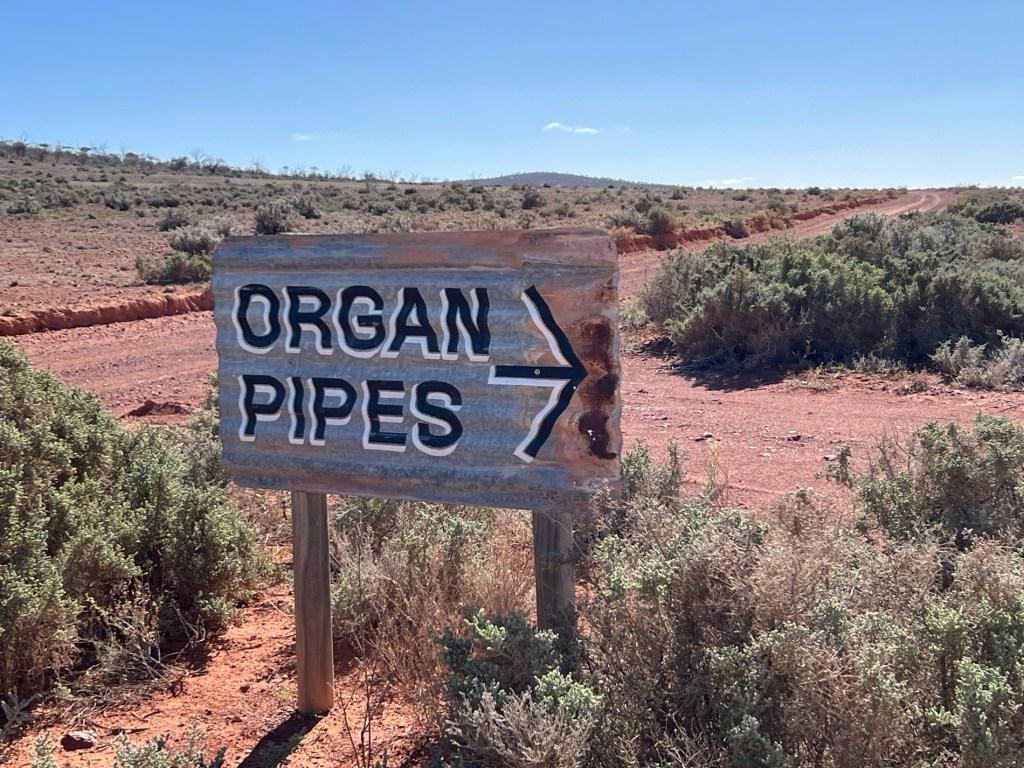 Our final point of interest on the Lake Gairdner return trip was The Organ Pipes. A rock formation resembling organ pipes and some new flowers and great vistas back down the gully and up to Spinifex dotted red rock hills.