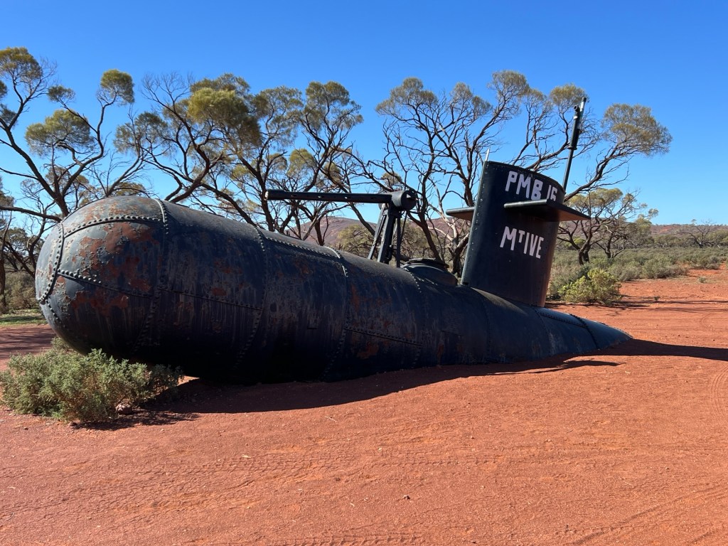 Left the Station at 11:45 for the submarine at the turn off. Yep! A submarine. Made by folk of the Station out of bits and pieces. Not bad.