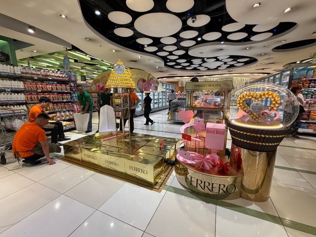Within the supermarket there were many, many staff – keeping the shelves packed, but lots of standing around too. There was a bunch of blokes putting up a Ferrero Rocher display for Valentines Day – so painstakingly. I was fascinated by how slow and precise they were – so revisited to review progress a few times during our shop.